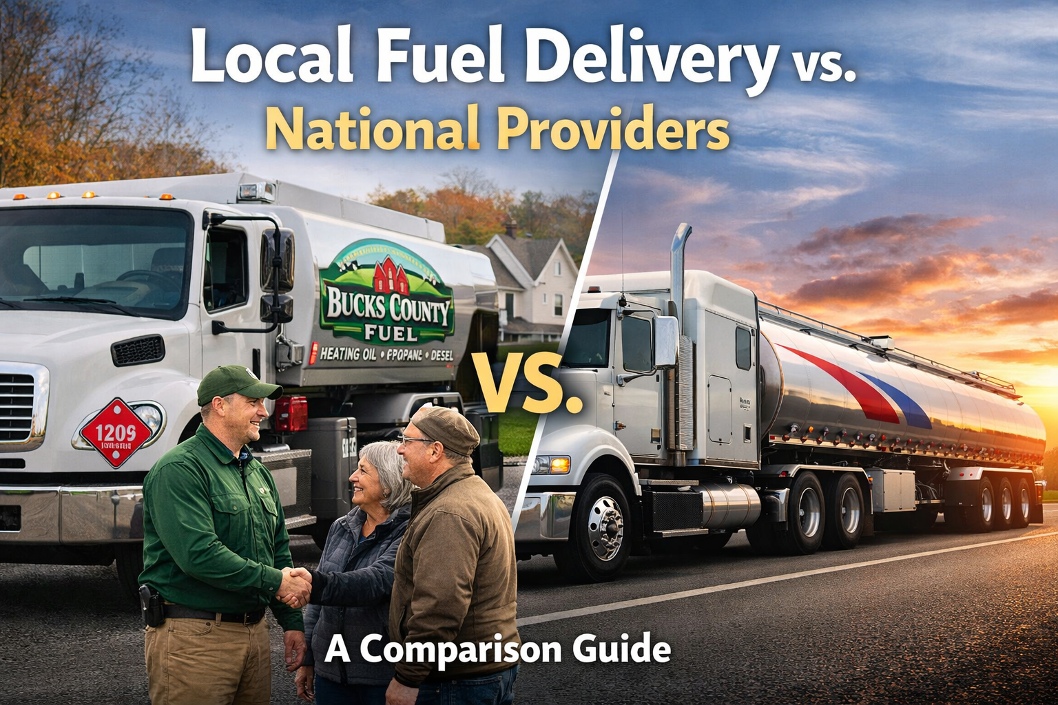 When it comes time to fill your home or business with heating oil, propane, or diesel, one of the biggest decisions you’ll make is who to trust with that delivery. In Bucks County, residents and businesses have a choice: go with a local fuel delivery company like Bucks County Fuel, or opt for one of the big national providers. Each has its own set of advantages and limitations — but understanding those differences can mean better service, more value, and greater peace of mind.